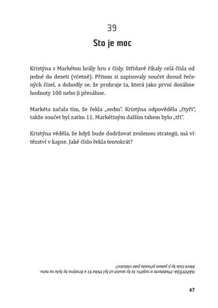 Jestli nechcete, aby se vám prášilo na mozkové závity a aby vaše neurony usychaly nudou, pořiďte si tuto knihu. Stovka vtipných hádanek, které se nikdy neochodí a jež navíc napnou vaše synapse až k prasknutí. S touto knihou se nikdy nebudete nudit!