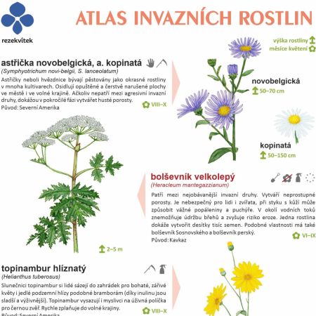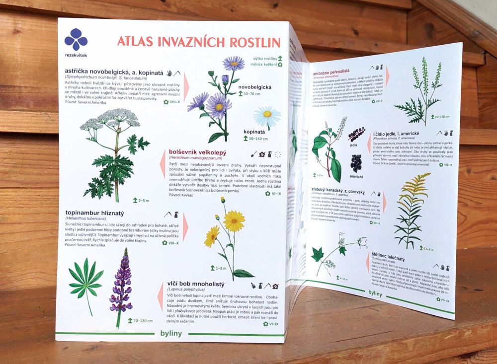 Laminované leporelo s obrázky invazních bylin i dřevin, které ohrožují jiné druhy české přírody. Doplněno o texty se zajímavostmi ke každému druhu i doporučené možnosti likvidace. Mohou s ním pracovat děti i dospělí.