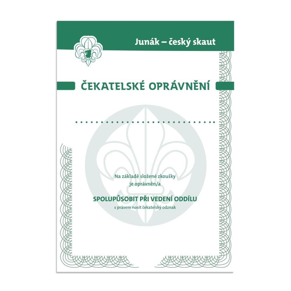 Dekret opravňující jeho držitele spolupůsobit při vedení oddílu s právem nosit čekatelský odznak na kroji.