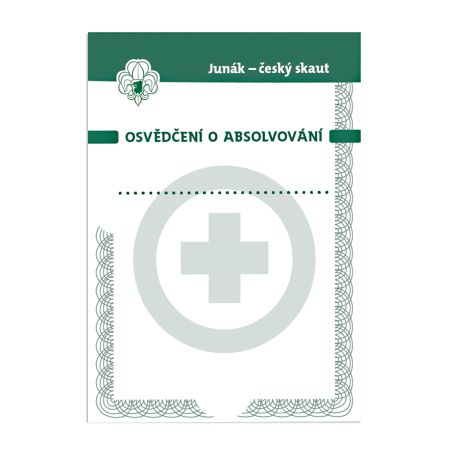 Dekret "Osvědčení o absolvování" používaný pro zdravotnické kurzy a kurzy první pomoci.