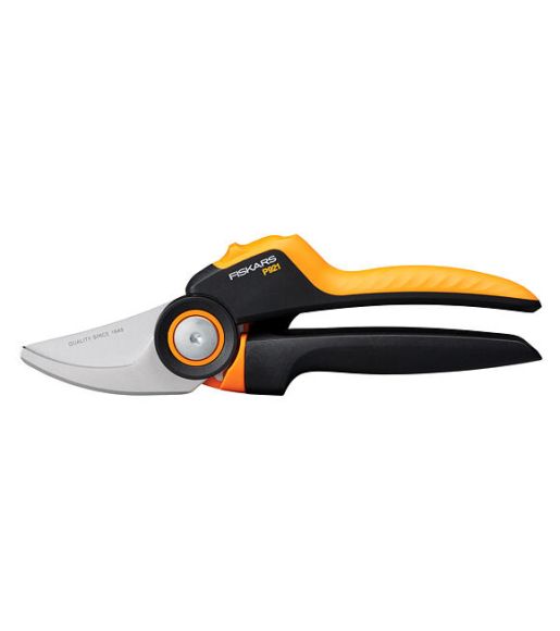 Zahradní nůžky Fiskars PowerGear X P921 jsou vhodné zejména pro malou a střední velikost rukou. Nůžky PowerGear X P921 zvládnou hladce ustřihnout čerstvé větve až do Ø 24 mm. Unikátní mechanismus PowerGear™ umožnuje stříhat až s 3x menší námahou ve srovnání s bežnými nužkami. Extra tvrdé, kalené expresně broušené ocelová čepele zůstávají dlouho ostré. Ergonomické rukojeti z FiberComp™ s 3D povrchem SoftGrip™ zaručují bezpečné a pohodlné držení. Zahradní nůžky PowerGear X P921 jsou speciálně designované pro praváky.
