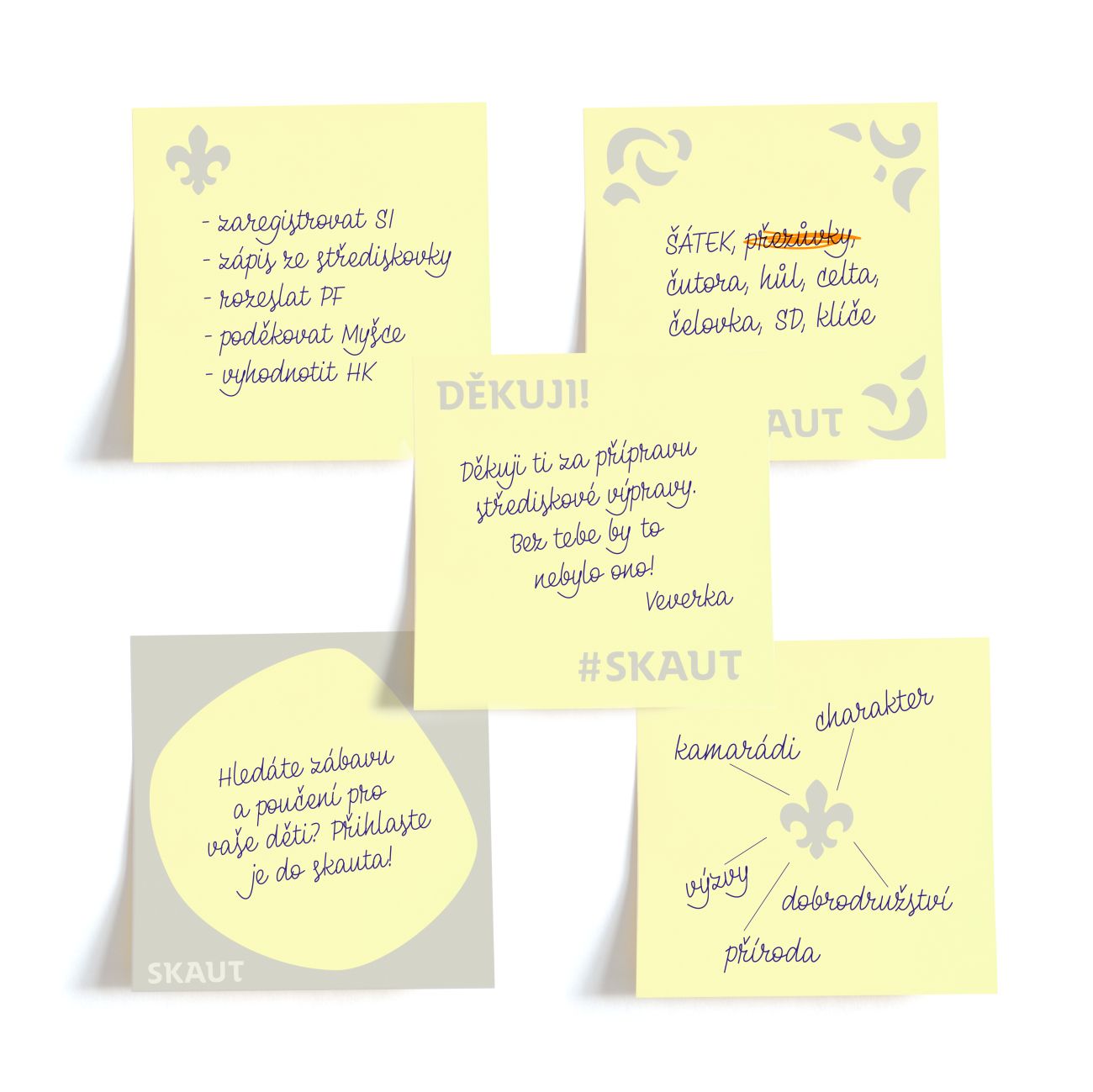 Bloček skautských lepících lístečků post-it, které využijete na krátké poznámky nebo poděkování spolupracovníkům. Nabízíme je v pěti různých variantách a každé balení obsahuje 100 lístečků.
