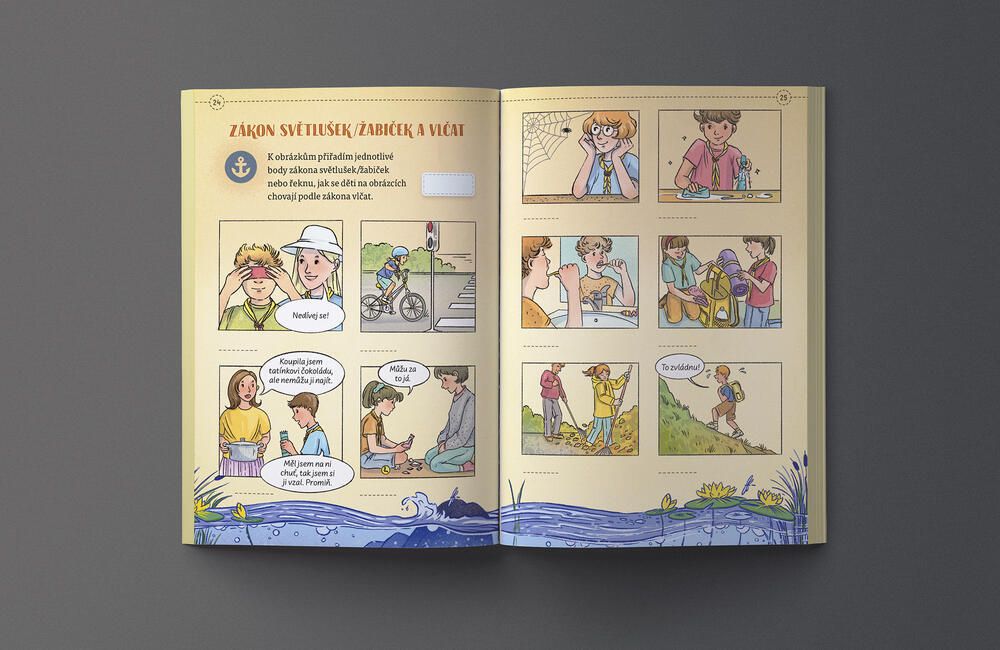 Všechny stezky vlčat, cestičky světlušek a plavby mají stejné úkoly stejného stupně na stejné stránce.