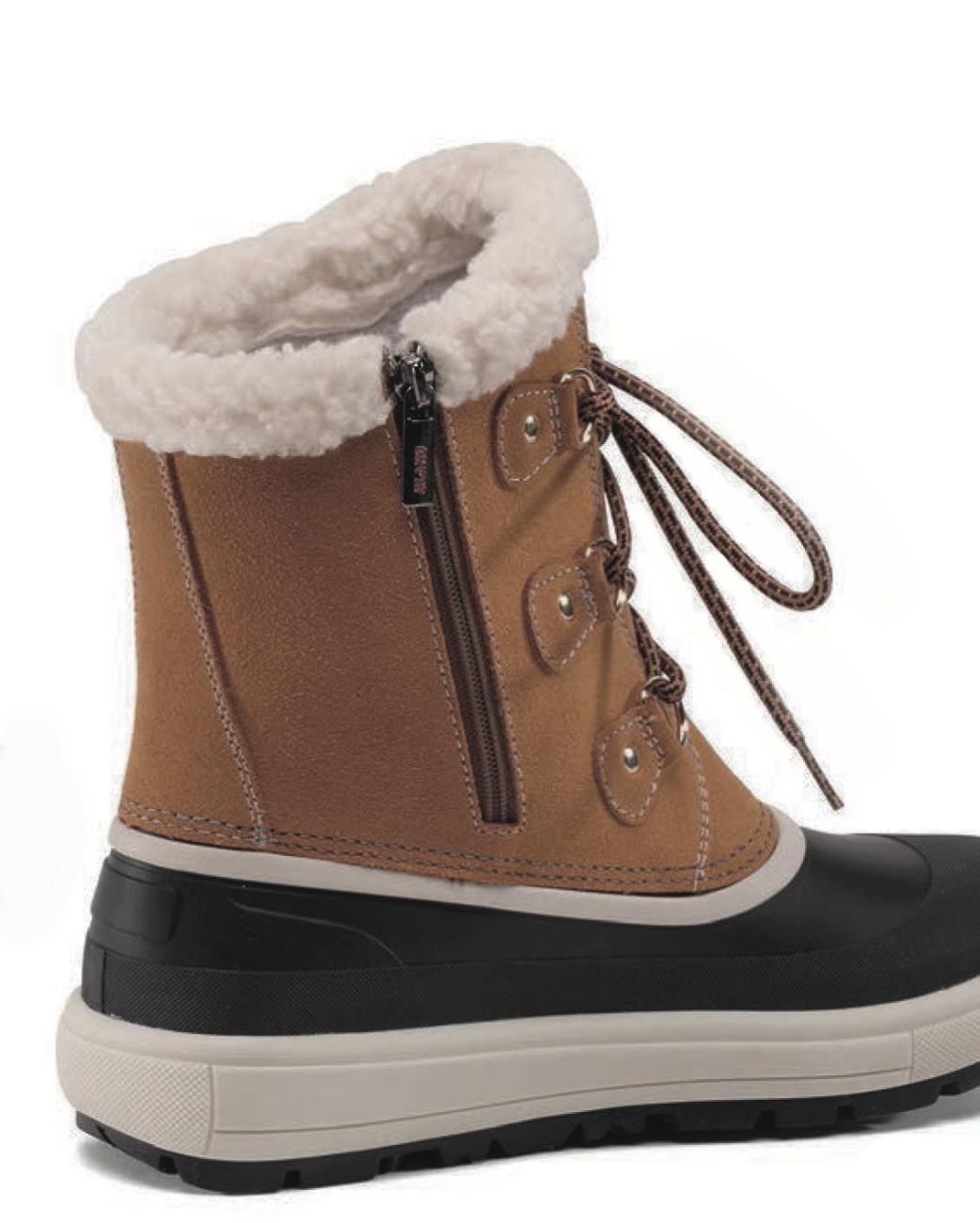 Kožený svršek s Vintage efektem a činěným olejem je přišitý k termické skořepinové podrážce z PU odolné do -30°C.