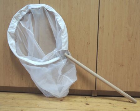 Smýkačka na dřevěné násadě o délce 60 cm se síťkou na pevném kruhu připevněném k násadě. Složitelné pouze při povolení spojovacího šroubu za pomoci nářadí.