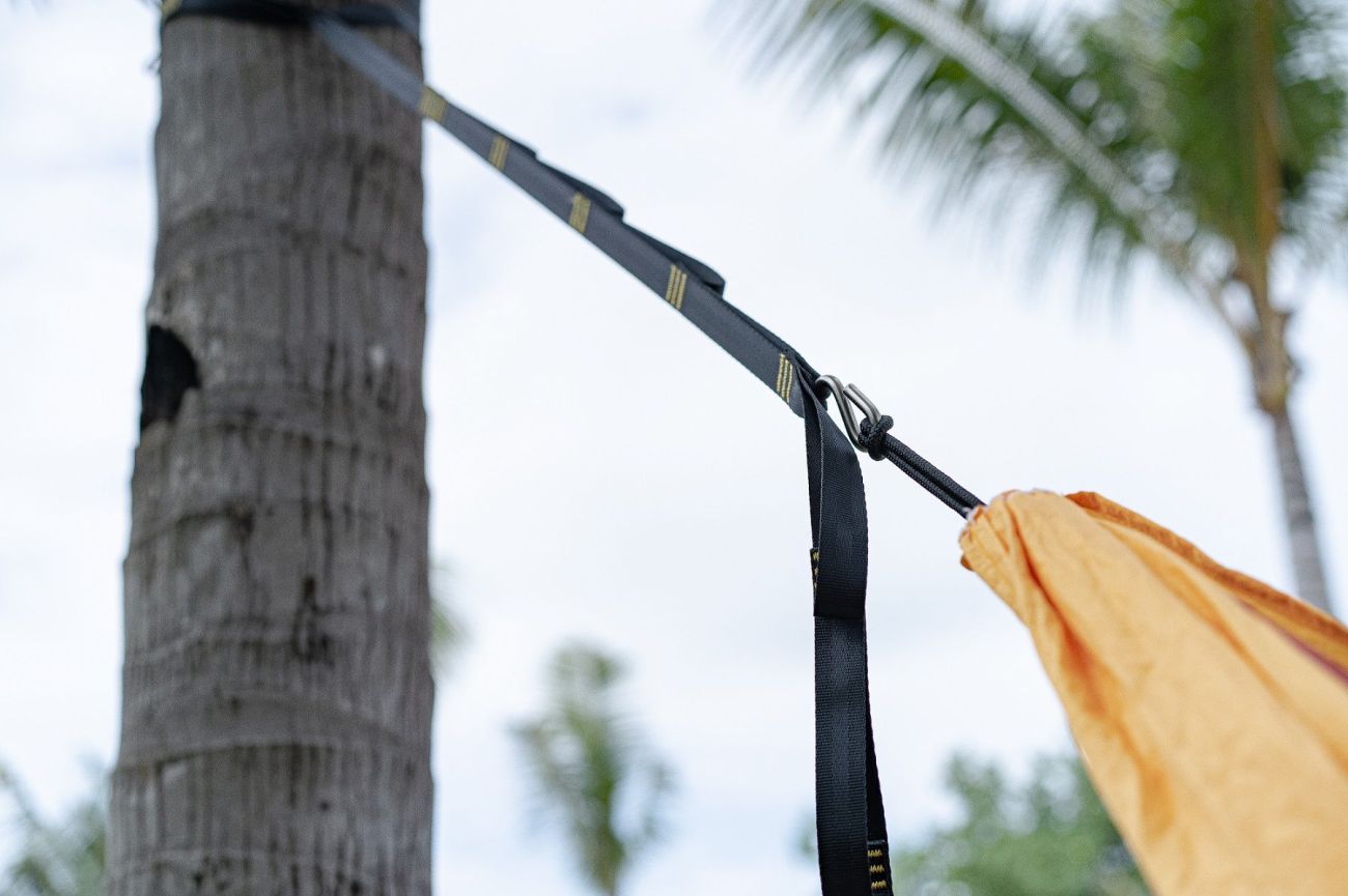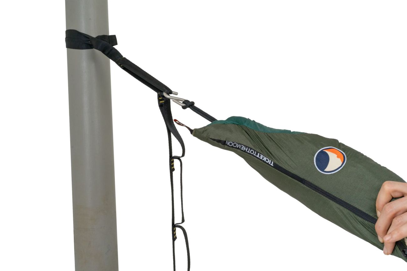 Utáhněte a připevněte hák nebo karabinu houpací sítě do jedné ze smyček.