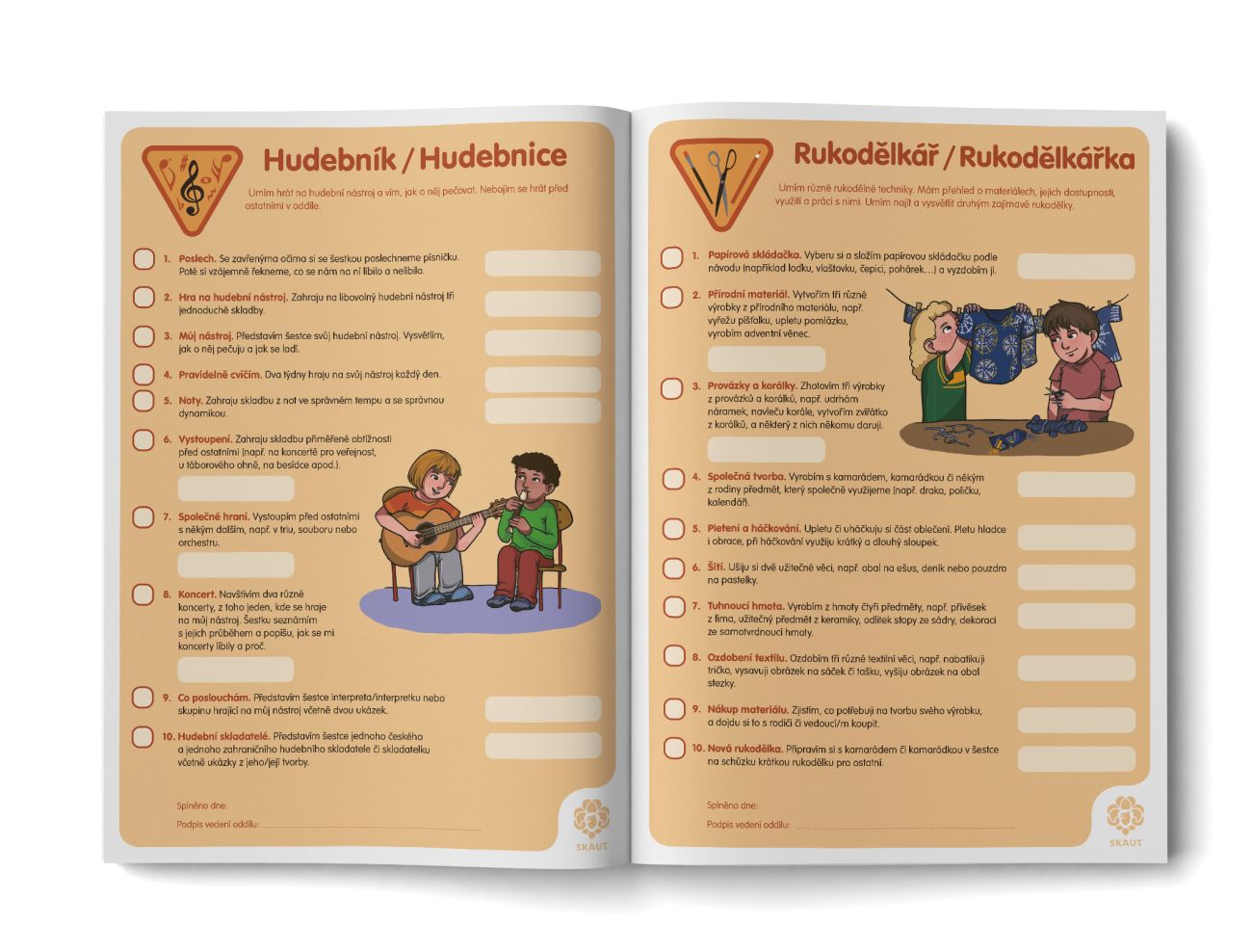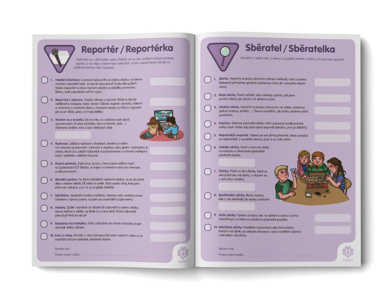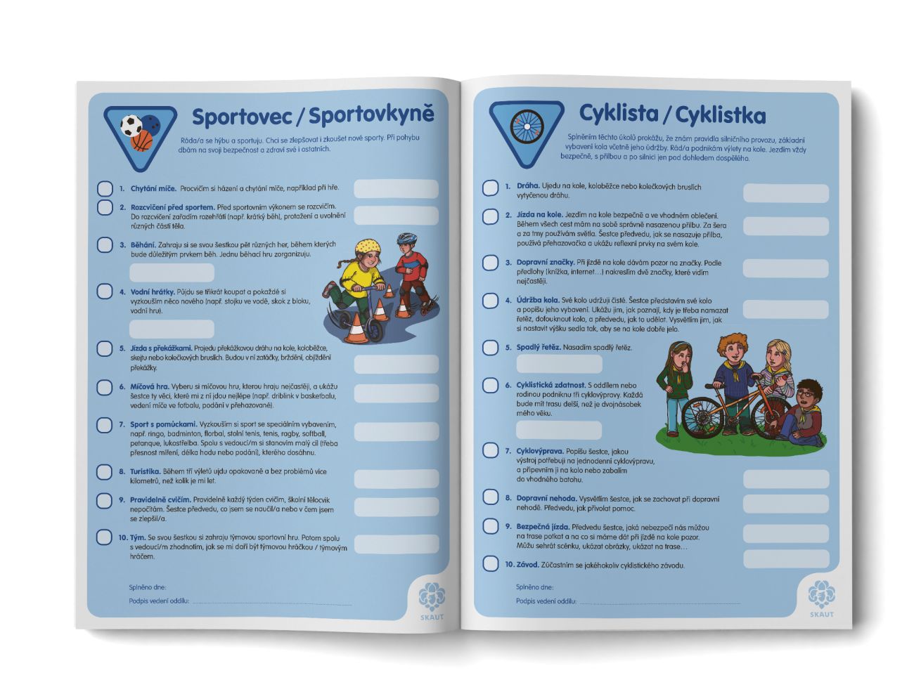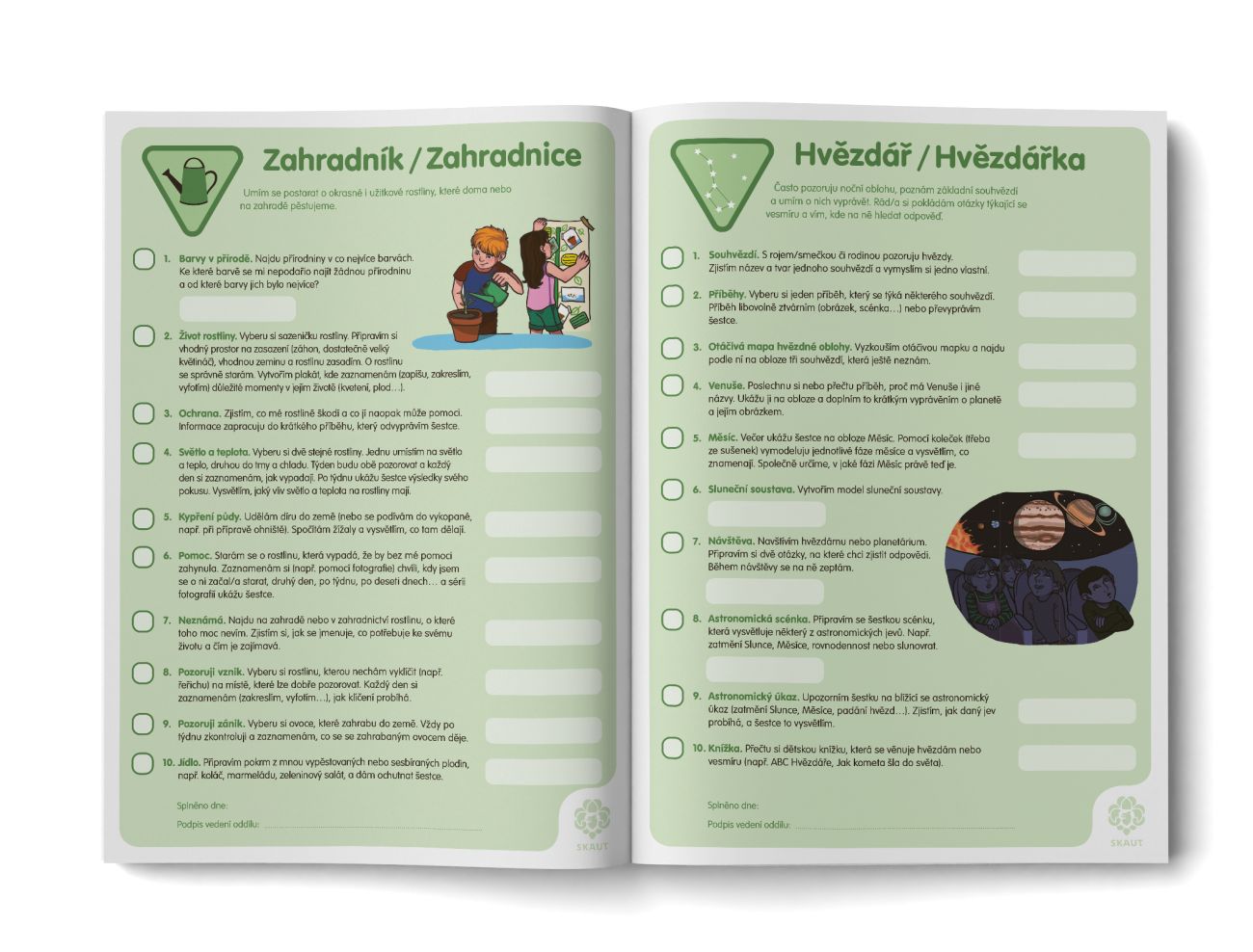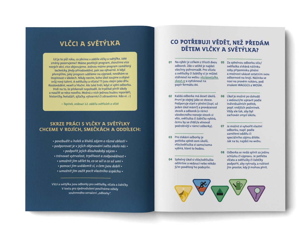 Aktualizované odborky pro vlčata, světlušky a žabičky - Vlčci a světýlka. Brožura obsahuje tři strany vysvětlení, jak vlčci a světýlka fungují, tabulku pro zapisování plnění a třicet dva pracovních listů vlčků a světýlek.